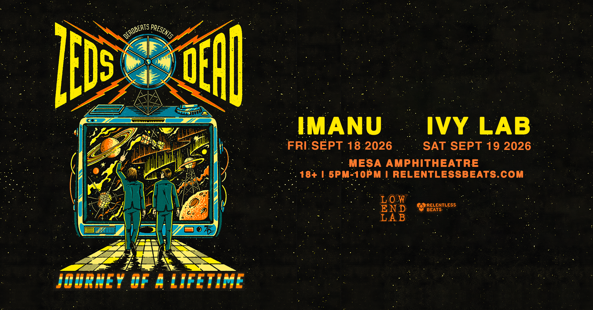 RELENTLESS BEATS AND DEADBEATS PRESENTS ZEDS DEAD “JOURNEY OF A LIFETIME”- THE LARGEST HEADLINING TOUR OF THEIR CAREER, SEPTEMBER 18 AND 19, 2026